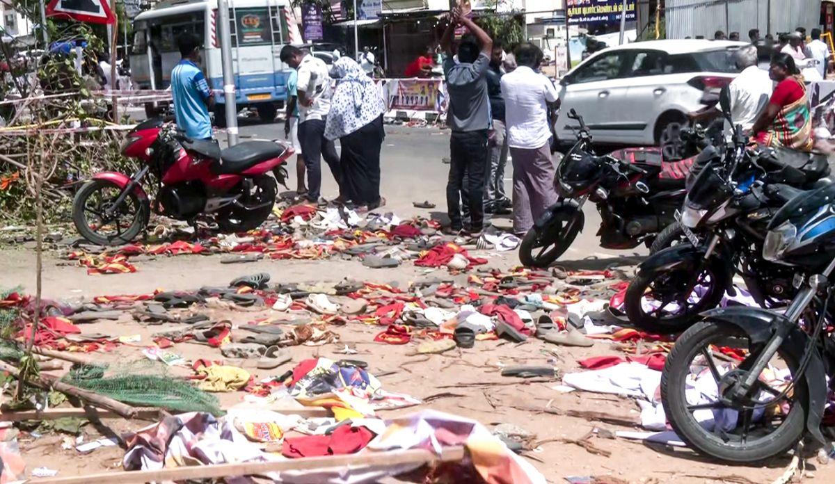 圖片:在卡魯(Karur)出現踩踏的觀點。 照片:ANI視頻抓取