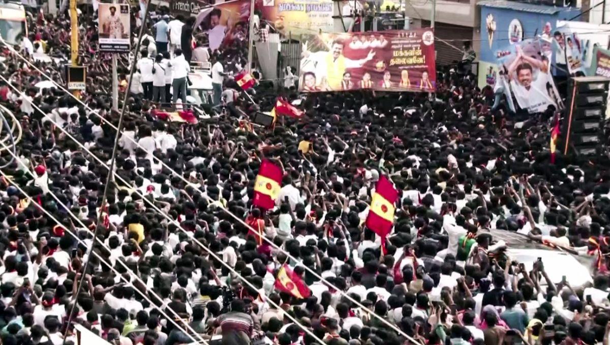 圖片:Tamilaga Vettri Kazhagam Vijay的負責人在2025年9月27日在Karur舉行的集會,然後Stampede殺死了41人。 照片:TVK/ANI照片