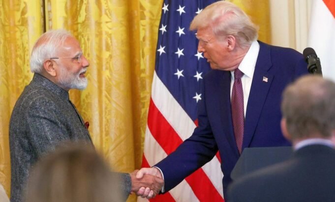 圖片:印度總理納倫德拉·莫迪在華盛頓特區白宮與美國總統唐納德·特朗普握手。 照片:新聞辦公室