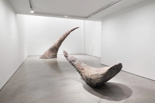 接下來的一周,您可以在紐約的 Nunu Fine Art 欣賞她的一些作品(包括 1982 年首次在 Leo Castelli 畫廊展出的作品,她與 Jasper Johns、Andy Warhol、Robert Rauschenberg 和 Bruce Nauman 一起在那裡展出)。最令人印象深刻的是從畫廊後面的地板上升起的巨大喇叭: 錐 (1981),這兩篇文章中較小的一篇,似乎已從其來源中刪除,也許是暴力地刪除,並且 熱 (1981),它似乎完好無損地從地板上伸出來,彷彿預示著某種巨大野獸的到來。兩者都是極端的後極簡主義,都散發著一種本能,讓人想像這些物體曾經在哪裡以及它們現在的用途是什麼。