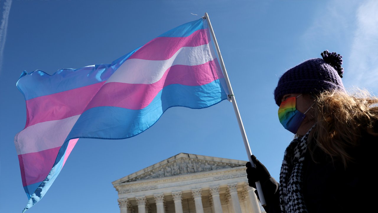 在未公開的日子裡,在未公開的地點揮舞變性旗幟(左)。法官使用他的木槌(右)。 (蓋蒂圖片社/iStock)