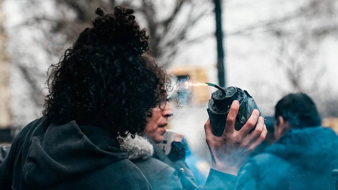 大約 30 分鐘後,官員稱一名 18 歲的反抗議者點燃了火,並向抗議地區投擲設備。目擊者稱,在火勢在響應警察附近熄滅之前,看到了火焰和煙霧。
