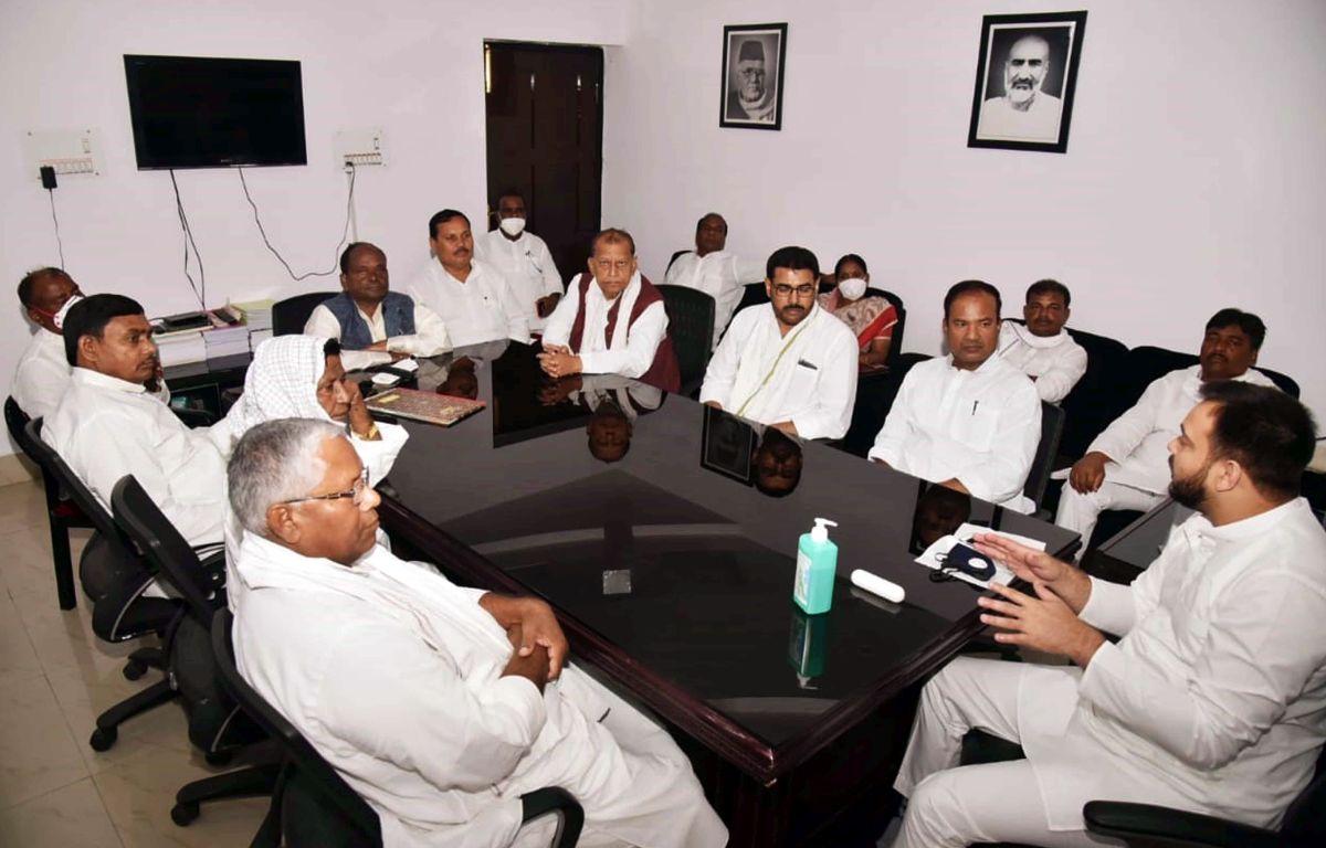 圖片:2020 年 6 月 22 日,印度人民黨領導人 Tejashwi Yadav 在巴特那的 SC/ST 保留地會見達利特領導人。 照片:ANI 照片