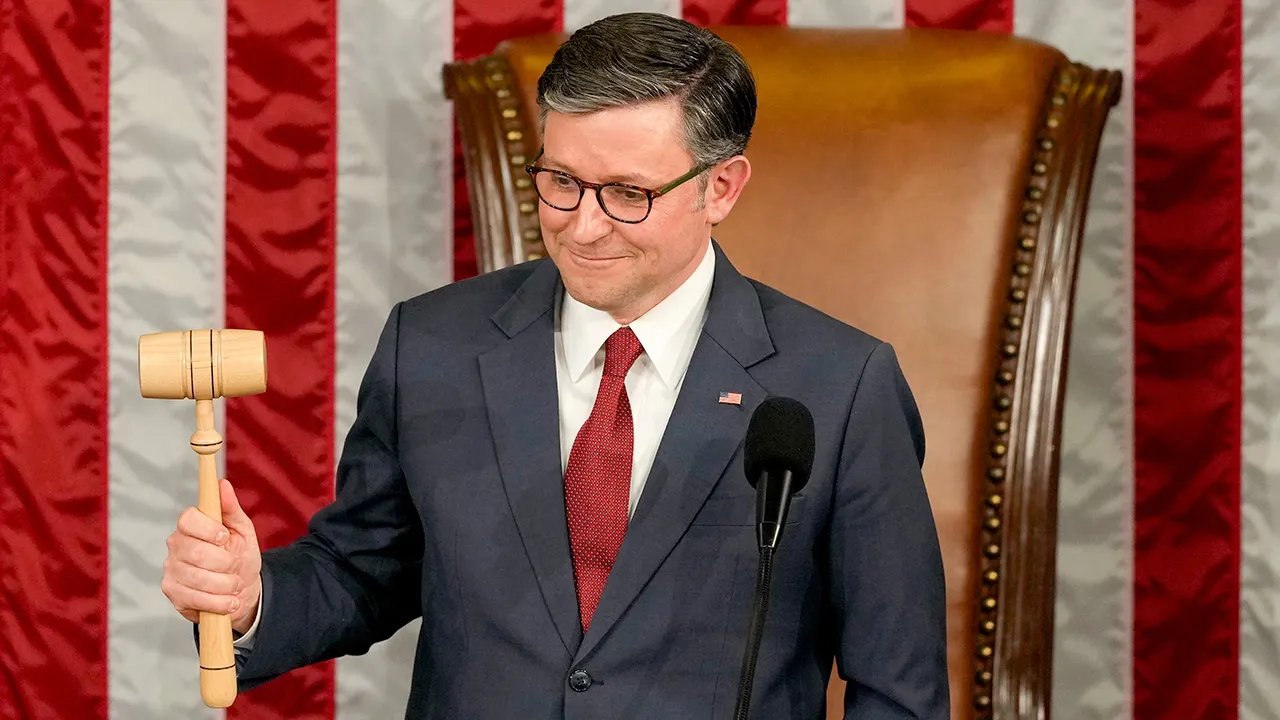 來自路易斯安那州的共和黨眾議員邁克·約翰遜 (Mike Johnson) 於 2025 年 1 月 3 日星期五在美國國會大廈再次當選眾議院議長後握住木槌。 (肯特·西村/彭博社,蓋蒂圖片社)