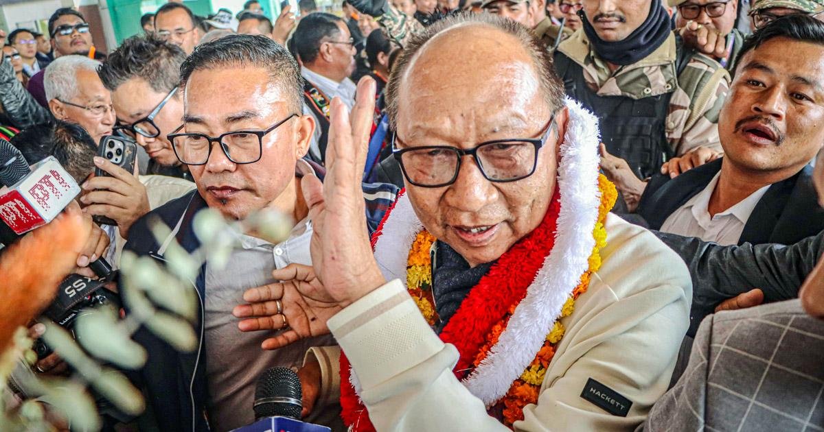 圖片:2026 年 2 月 4 日,曼尼普爾邦 NDA 立法機構當選黨魁 Yumnam Khemchand Singh 抵達因帕爾機場。 照片:ANI 照片