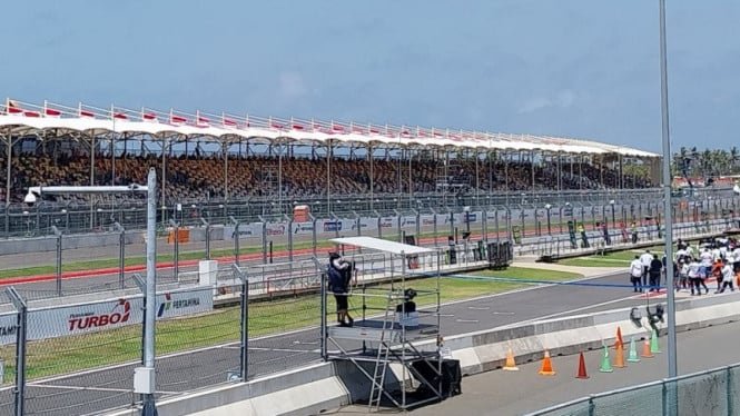 Motogp Mandalika 2025主要種族本身定於14.00 WIB開始,成千上萬的觀眾在早上包裝了Tribune。
