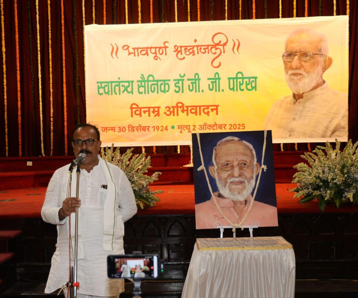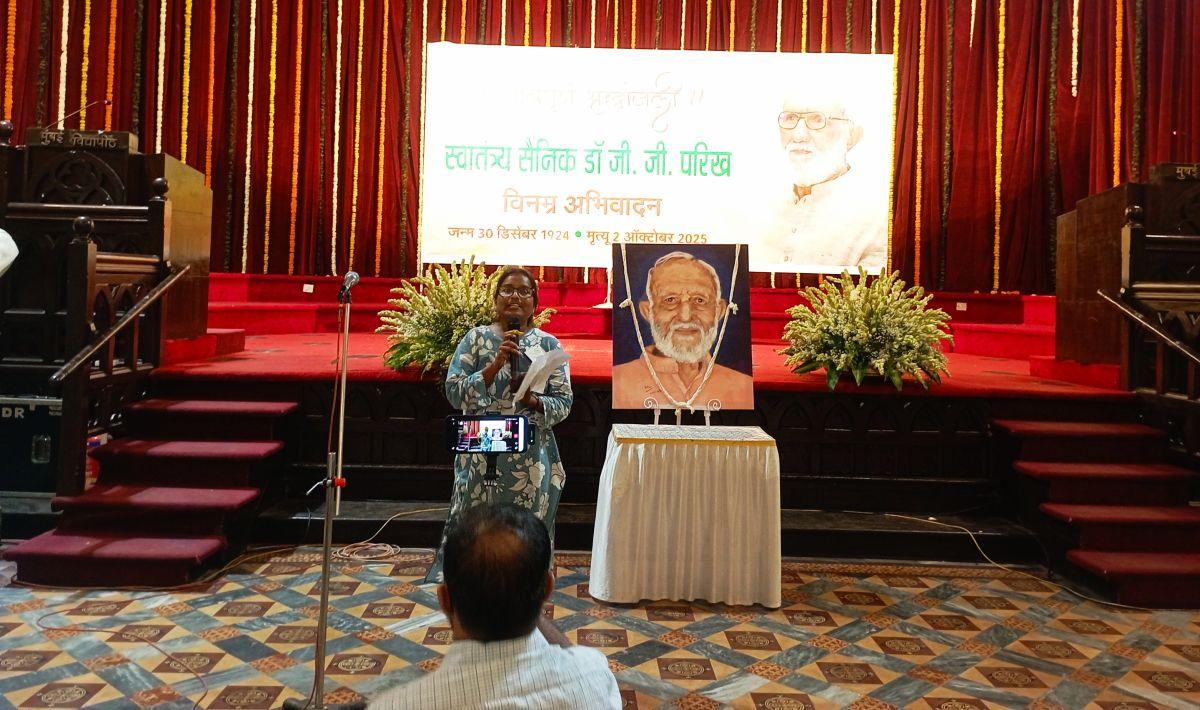 來自社會主義運動的一系列演講者向孟買大學的匯聚室致敬自由鬥士、社會主義者和甘地主義者 GG Parikh 博士,他於 10 月 2 日去世,享年 101 歲。