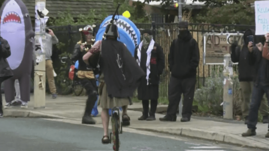 俄勒岡州波特蘭 (Koin) – 當第九巡迴法院正在權衡是否允許特朗普總統在波特蘭街頭髮展聯邦軍隊時,數十名抗議者聚集在冰設施外,其中包括許多服裝和unper。