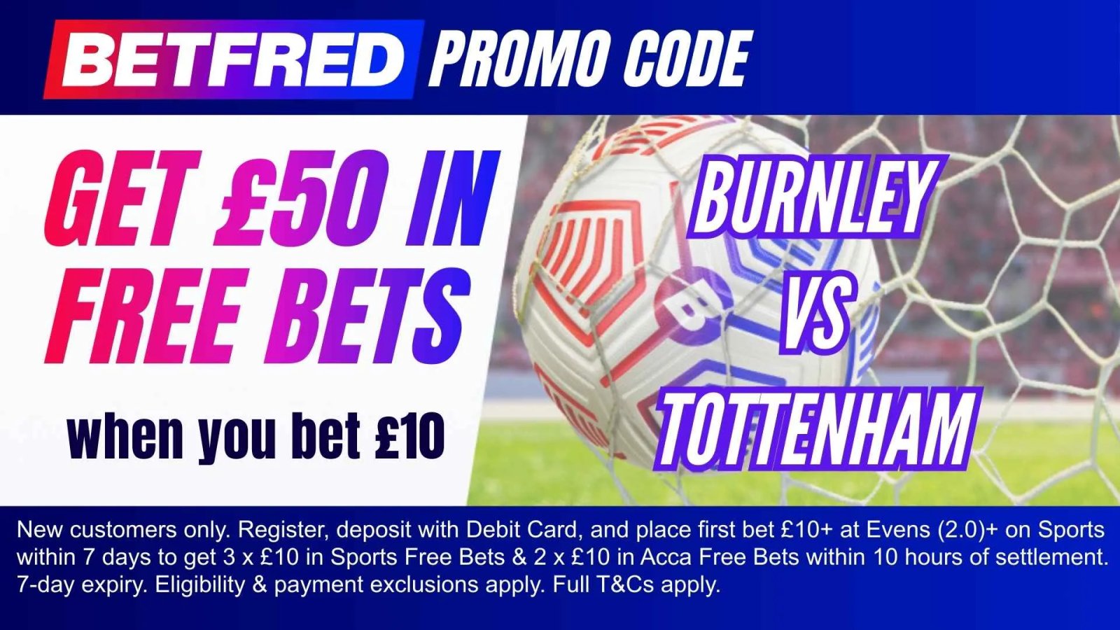 4. 進行 10 英鎊或以上的合格投注 伯恩利 v 托特納姆熱刺 (或任何體育市場)甚至 (2.0) 或更高。
