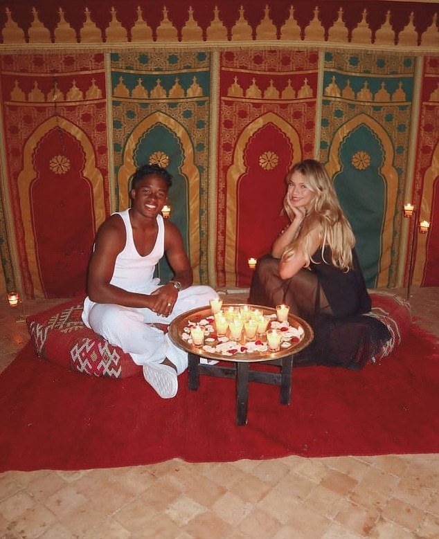 在一張照片中,恩德里克和他 24 歲的妻子加布里埃爾·米蘭達 (Gabrielle Miranda) 坐在帳篷內的墊子上,桌子上放著一束點燃的蠟燭,營造出浪漫的氣氛。