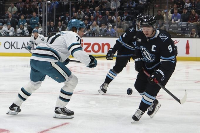 週五晚上,尼克·施馬爾茨在鹽湖城上演職業生涯第二次帽子戲法,並送出助攻,帶領猶他猛獁象隊以 6-3 戰勝聖何塞鯊魚隊。