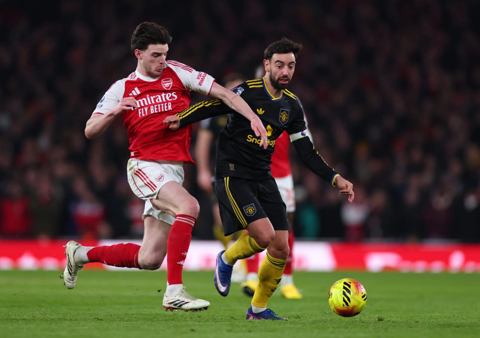 Home 運動的 布魯諾費爾南德斯 (Bruno Fernandes) 與德克蘭賴斯 (Declan Rice) 在 Huscored 賽季最佳陣容中展開對決