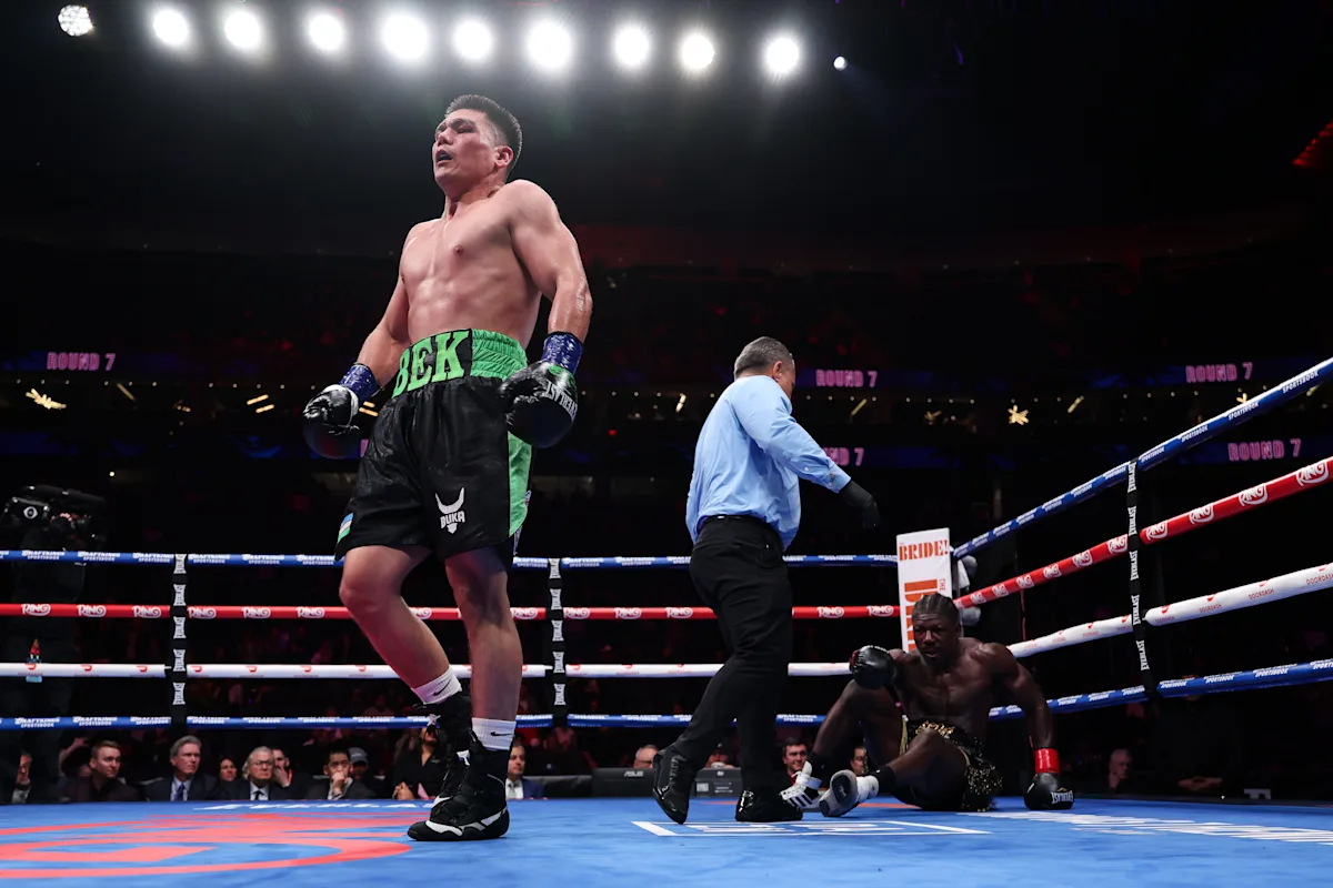 貝克特米爾·梅利庫耶夫 將戰績提升至17勝1負,並在停賽後第11次擊倒對手 塞納·阿格貝科 他們在內華達州拉斯維加斯 T-Mobile 競技場舉行的超中量級對決第七輪還剩一秒。