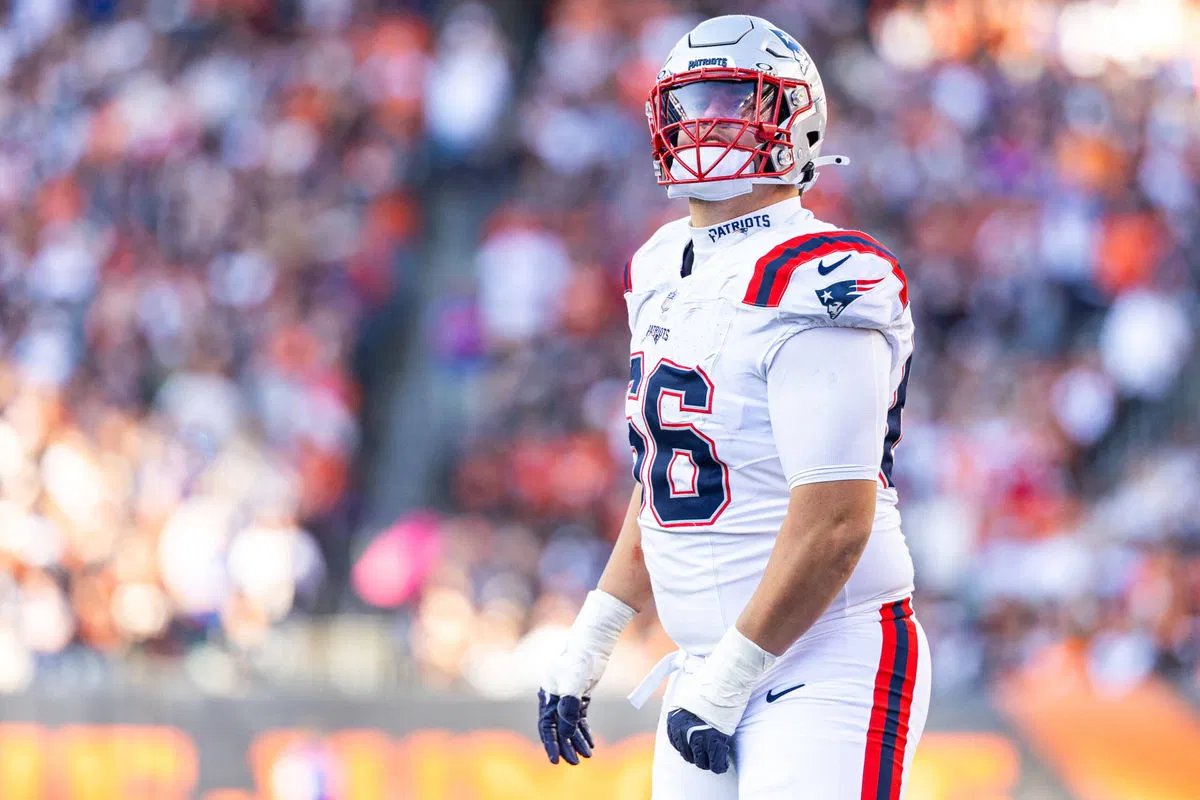 2025 年 11 月 23 日:新英格蘭愛國者隊進攻前鋒威爾·坎貝爾 (Will Campbell) 在俄亥俄州辛辛那提 Paycor 體育場舉行的美國橄欖球赫倫 (Herren) NFL 66 比賽中對陣辛辛那提猛虎隊 (Cincinnati Bengals) 的比賽中。 /CSM 辛辛那提 美國 – ZUMAc04_ 20251123_zma_c04_478 版權所有:xJohnxMersitsx