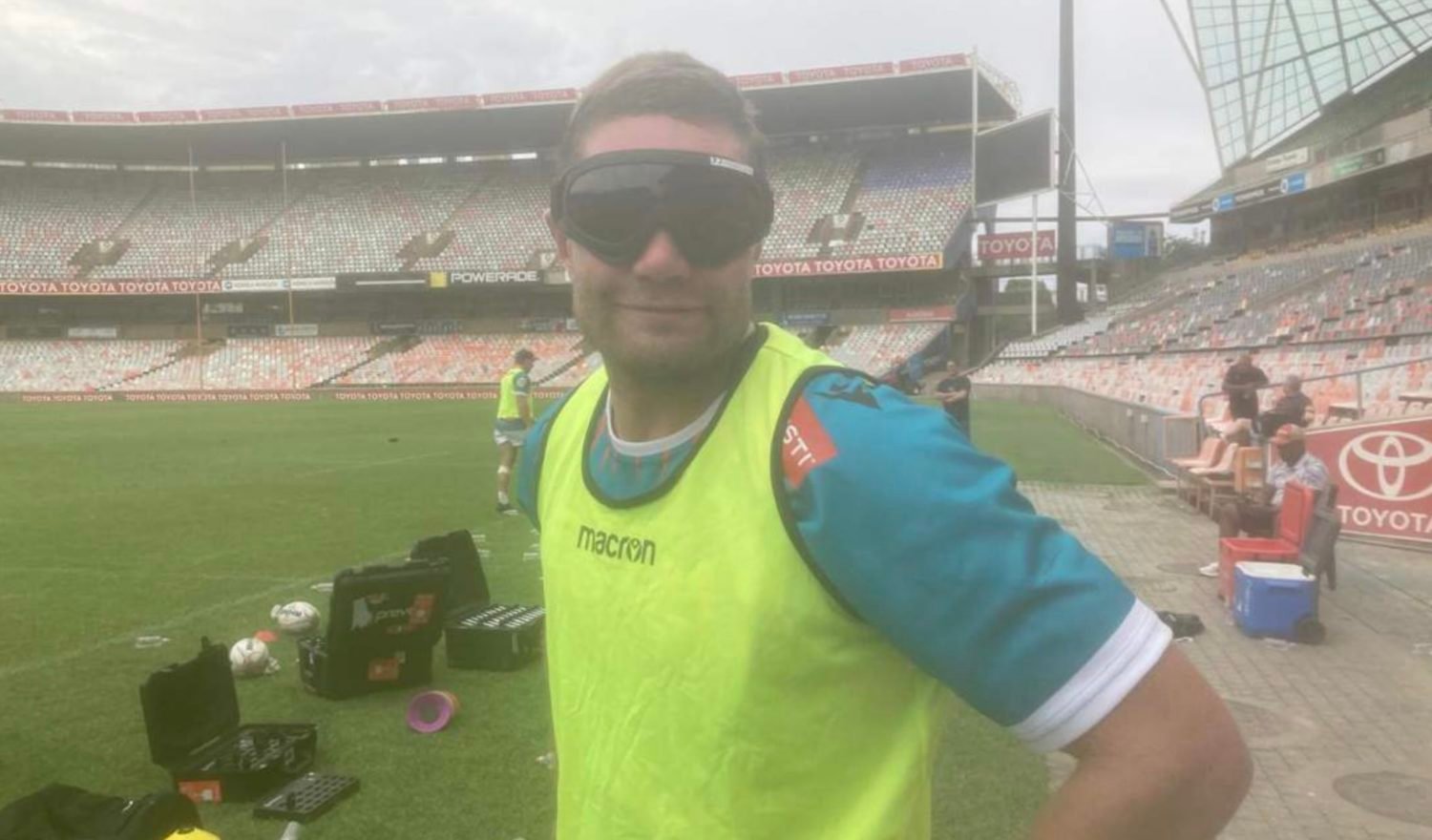 鏡架的外側有海綿襯裡,提供額外的保護,儘管週一布隆方丹的天氣多雲,這位 29 歲的球員仍然在訓練間隙停下來幾次清潔鏡片,以適應佩戴鏡片的訓練。