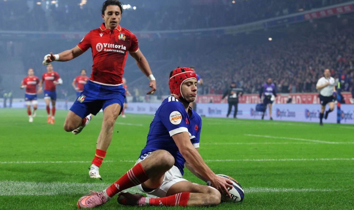 但在義大利邊鋒路易斯·林納被出示黃牌後,邊鋒蓋爾·德萊恩的首次嘗試,以及來自埃米利安·加萊的另一名球員為法國隊的勝利增添了光彩,使他們走上了大滿貫的道路。