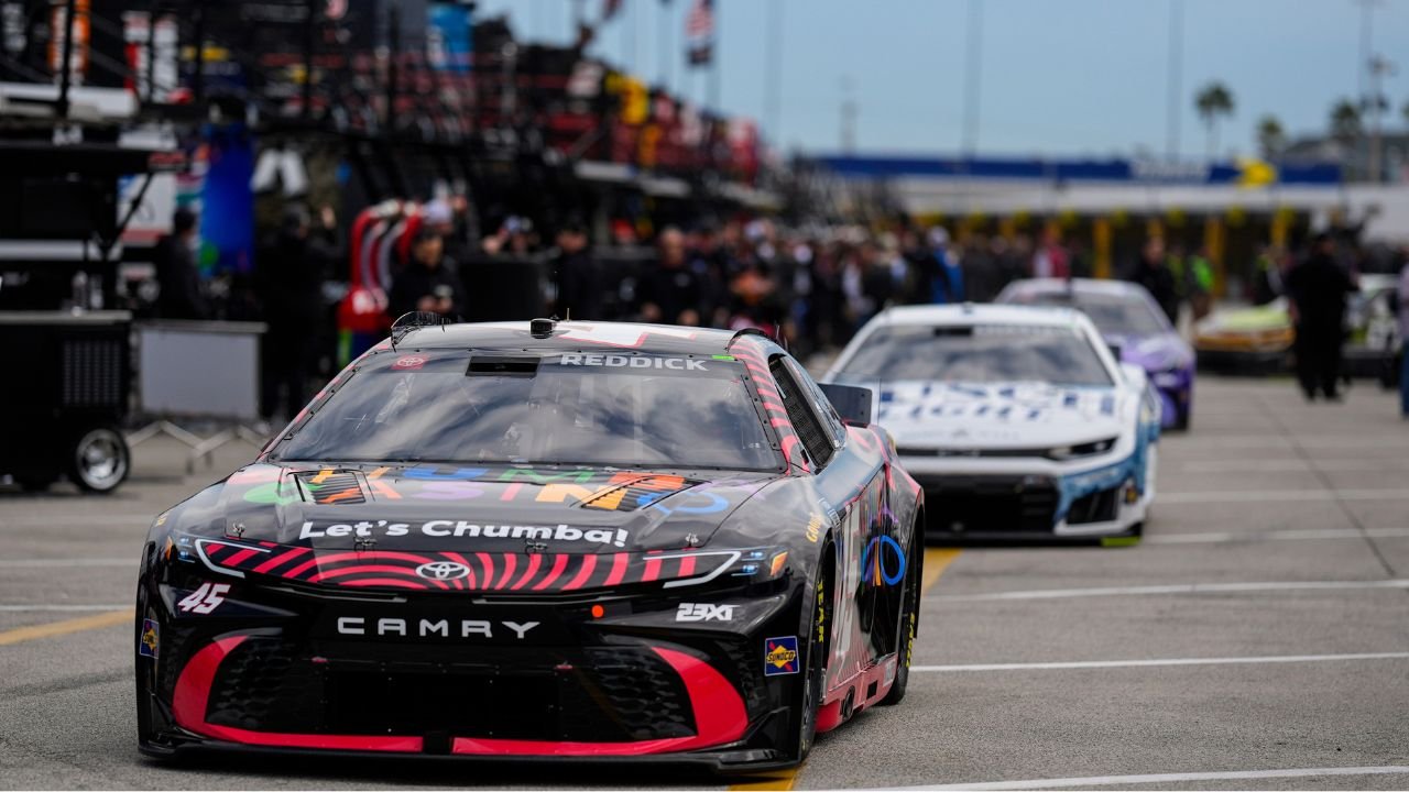 週日,駕駛豐田 23XI Racing 賽車的雷迪克僅領先一圈:為 NBA 名人堂成員、三屆代托納 500 大賽冠軍丹尼·哈姆林 (Denny Hamlin) 所擁有的球隊奪得方格旗。