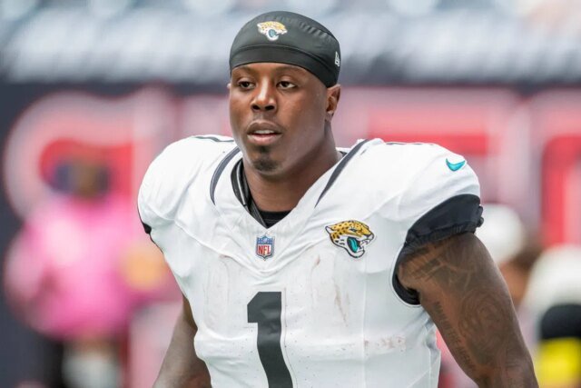 佛羅里達州傑克遜維爾 – 12 月 7 日:2025 年 12 月 7 日在傑克遜維爾 EverBank 體育場舉行的傑克遜維爾美洲虎隊和印第安納波利斯小馬隊之間的比賽之前,傑克遜維爾美洲虎隊跑衛特拉維斯·艾蒂安 Jr. 1。照片由 David Rosenblum/ICON Sportswire 拍攝 NFL,美式足球 Herren,美國 12 月 7 日小馬隊在美洲虎隊 編輯僅使用 Icon251207524022