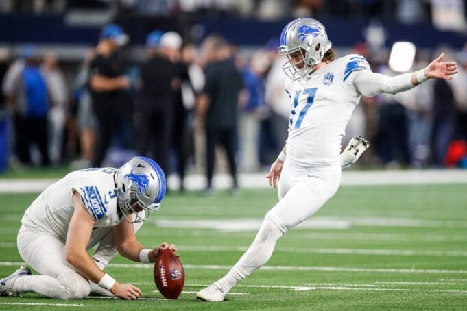 底特律獅子隊的射手邁克爾邁克爾(Michael)2023年12月30日星期六在德克薩斯州阿靈頓的AT&T體育場扮演達拉斯牛仔隊之前已經熱身。