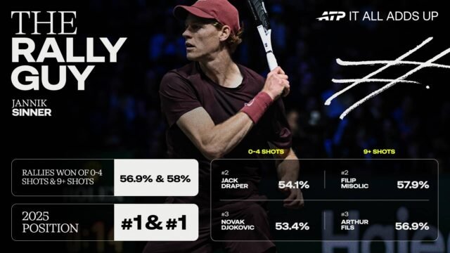 Jannik Sinner 可以在 2025 年完成這一切,並且有數據支持這一點。無論積分是瞬間決定的,還是通過底線交換罰球獲得的,意大利人始終名列前茅,展現了定義他賽季的完整性。