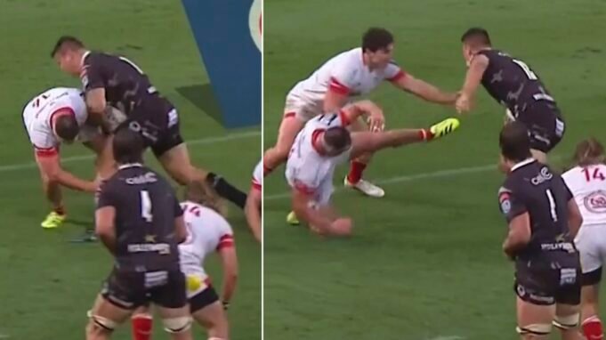 鯊魚隊中鋒安德烈·埃斯特赫伊森 (Andre Esterhuizen) 在前往國王公園嘗試線的途中撞倒了阿爾斯特妓女羅布·赫林 (Rob Herring)。