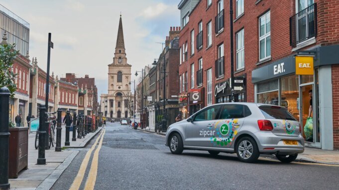 在英國,一些車輛被標記為“Zipcar Flex”——這意味著它們可以停放在指定區域內的任何地方,而不是特定的停車位。
