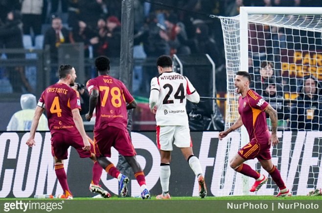 洛倫佐·佩萊格里尼主罰點球幫助羅馬1-1戰平AC米蘭,但他們錯失了縮小與意甲領頭羊國際米蘭差距的機會。