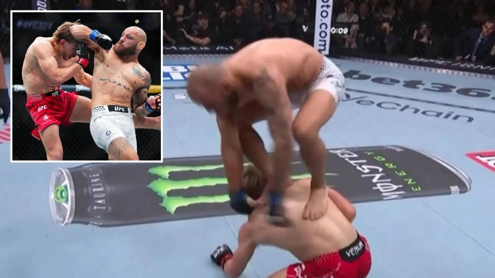 艾倫用左手猛擊球頂,將巴西拳手的頭砸了下來。