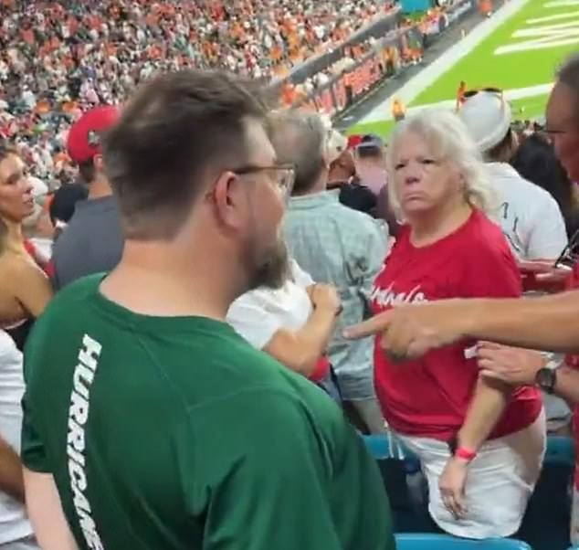 現場發生的事情是,一名身穿“紅雀隊”球衣的女子和她的丈夫在場,與一名似乎獨自一人的邁阿密球迷之間發生了一場明顯的尖叫比賽。