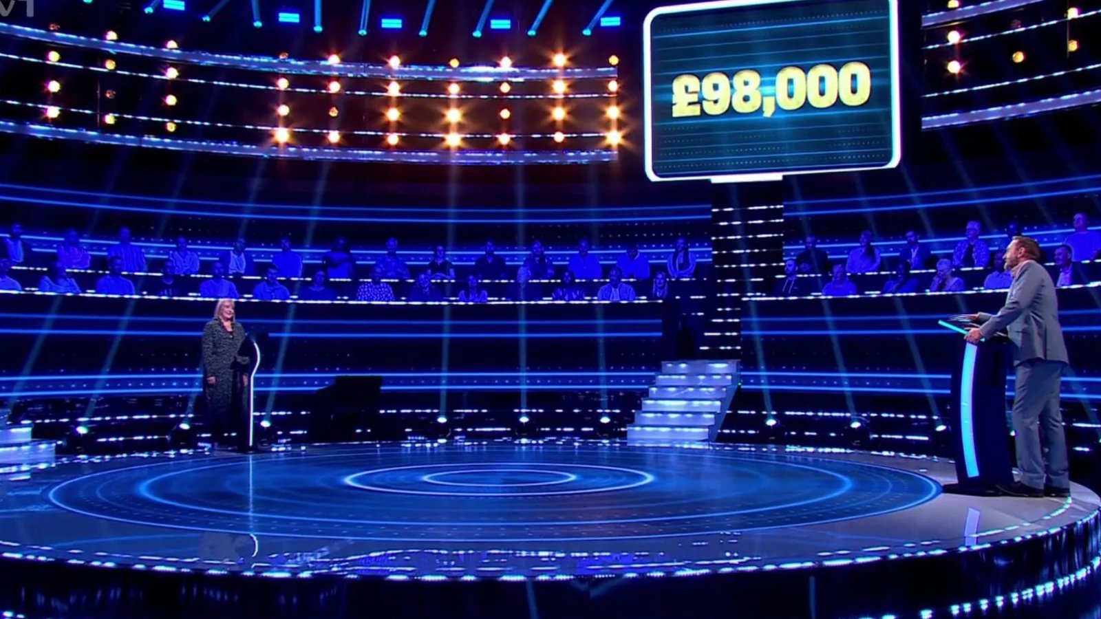 參賽者莉茲決定帶回家 10,000 英鎊,而不是爭奪 98,000 英鎊的現金獎勵圖片來源:英國獨立電視台