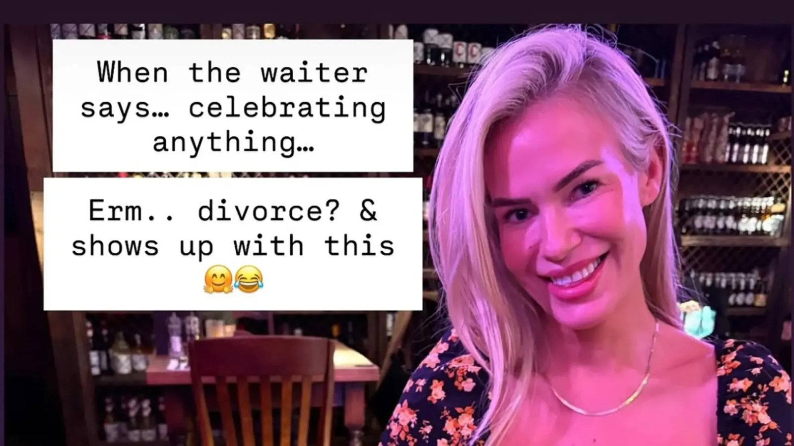 這位兩個孩子的媽媽寫道:“當服務員說‘慶祝某事’時……呃,離婚?然後就帶著它出現了。”