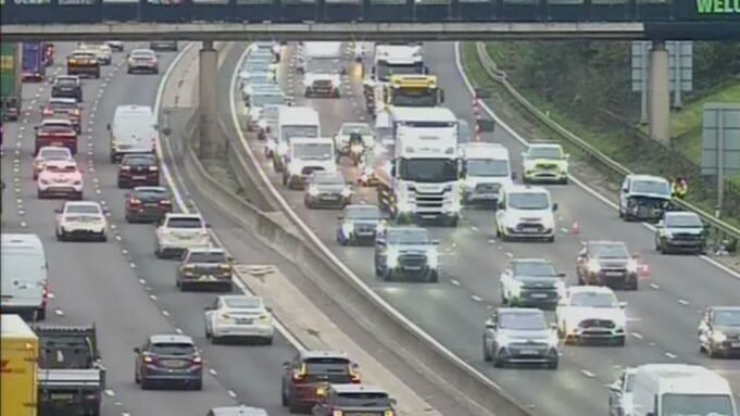 M6 和 M42 在一場可怕的事故後停下來,一輛載著司機的巨大車輛引發了六英里的交通事故並造成了長達一個小時的傷害。