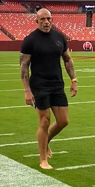 週一晚上,華盛頓指揮官隊的進攻線教練以其肌肉發達的身體在社交媒體上引起了瘋狂。